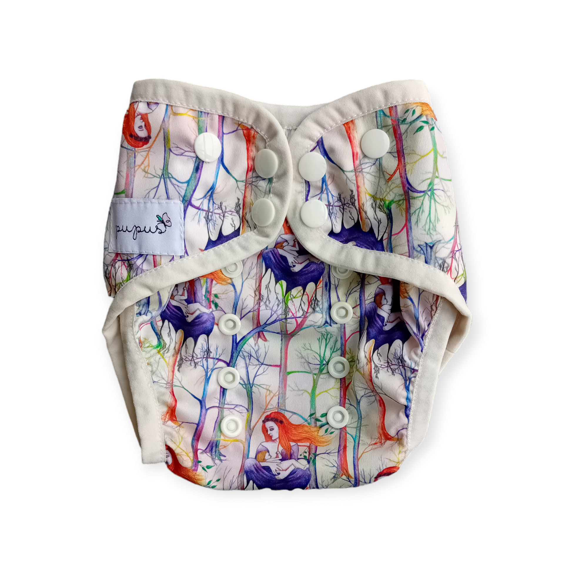 Trata-se de uma capa plana, muito delicada cujo corte interno o torna ideal para cobrir fraldas planas (musselinas ou pré-dobradas), seja com snappi ou dobradas em 3 (trifold), ou ainda fraldas ajustadas, impermeabilizando-as.