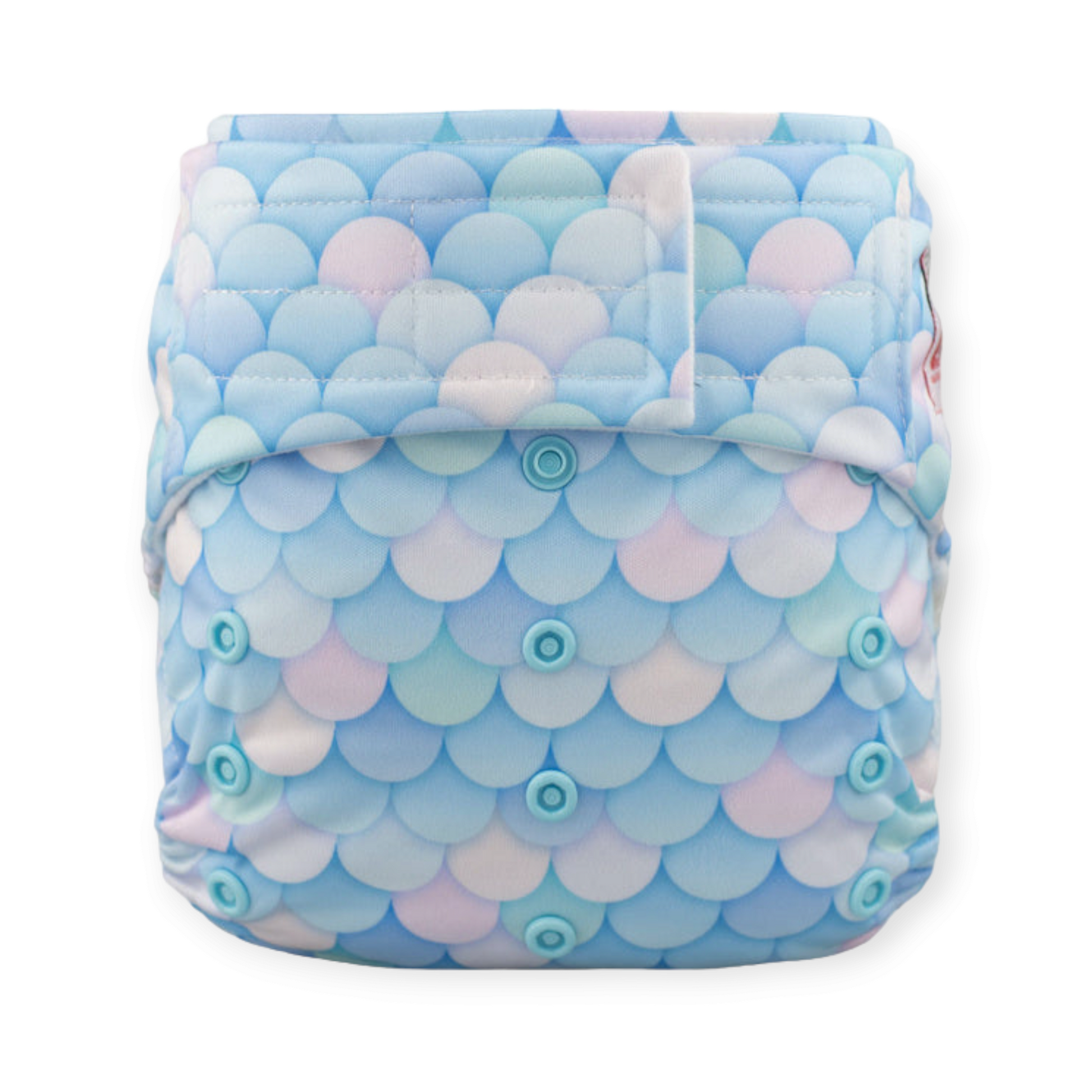 - Fralda de pano reutilizável de Bolso de tamanho único da marca Elfdiaper. Modelo com ajuste em velcro.
