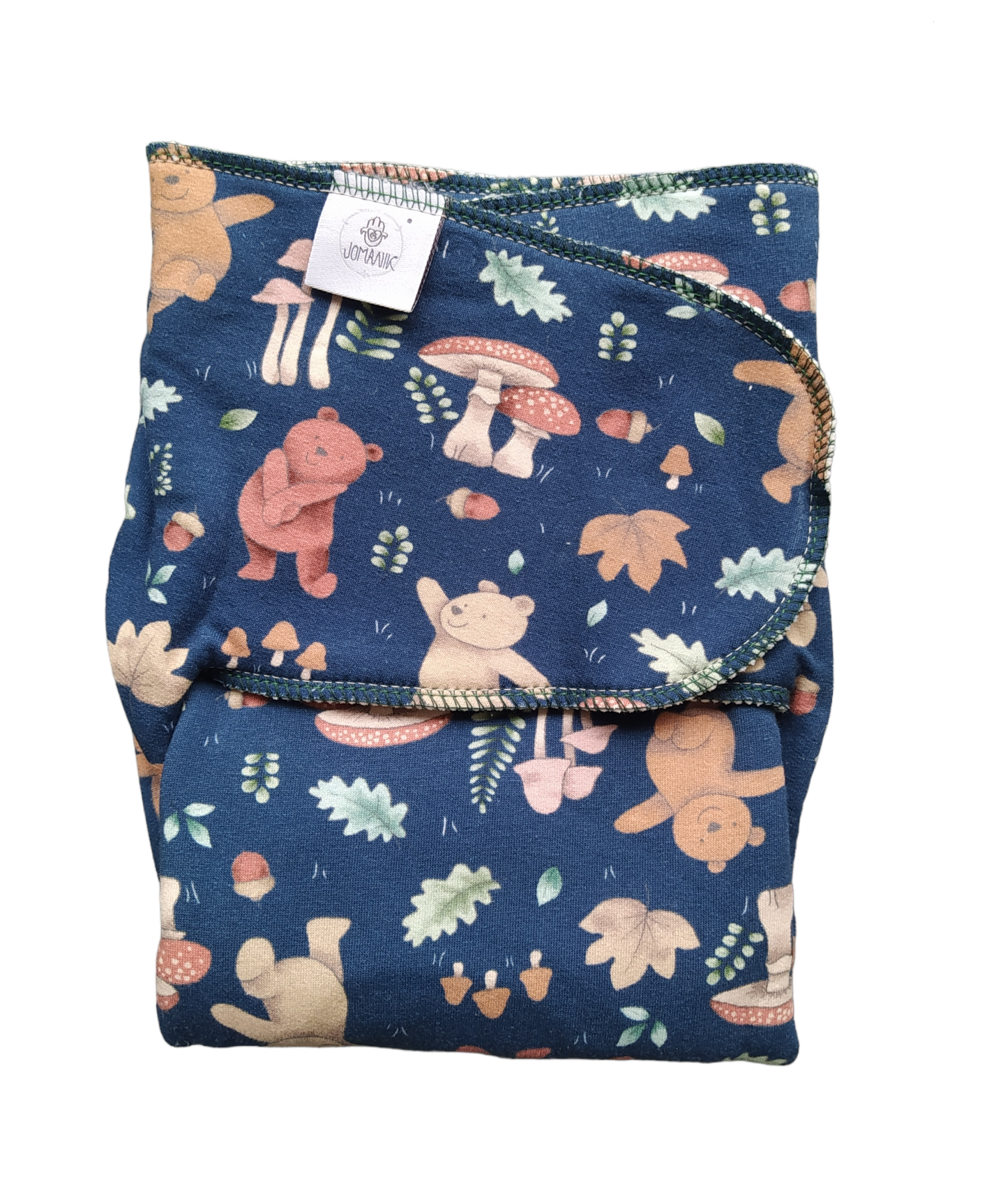 Fralda de tamanho único que serve sensivelmente desde os 5,5 aos 15kg. Feita de forma artesanal por uma marca portuguesa.
