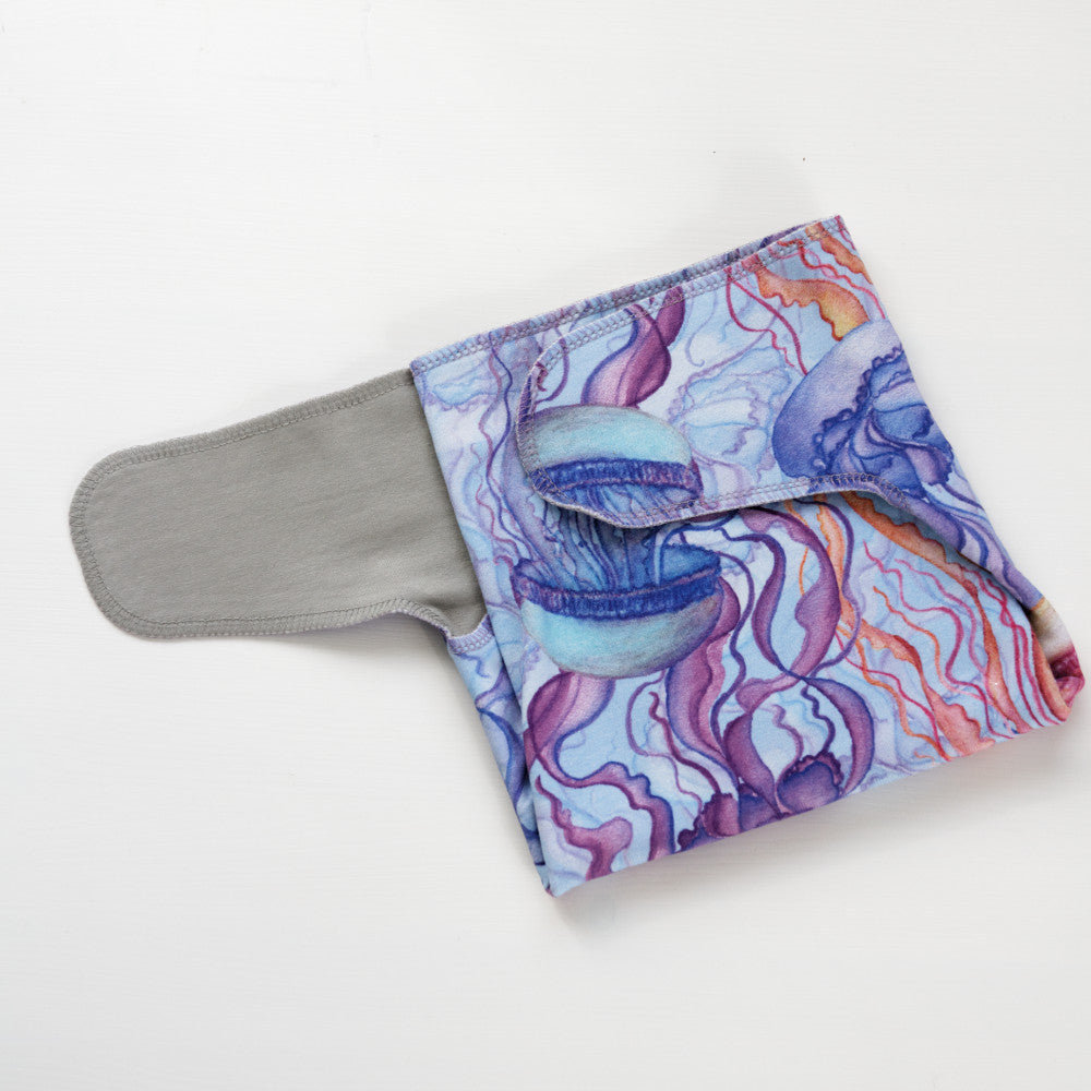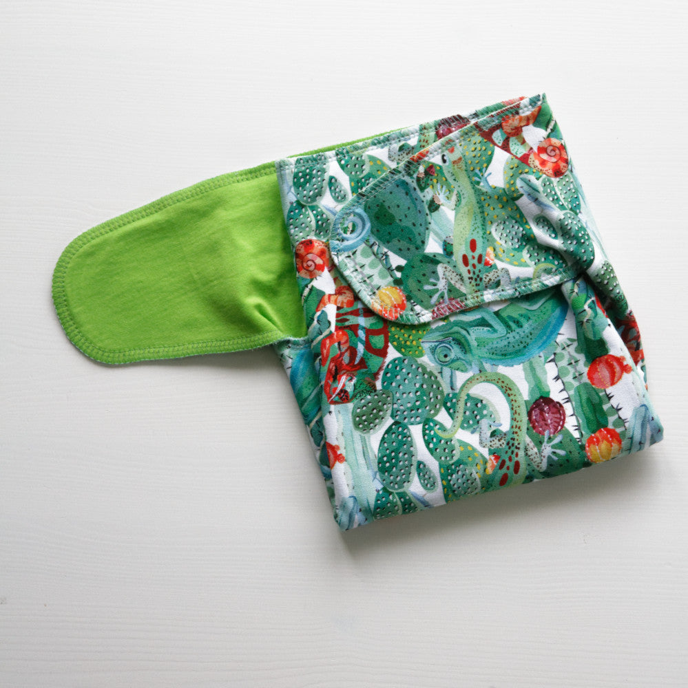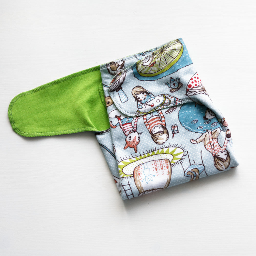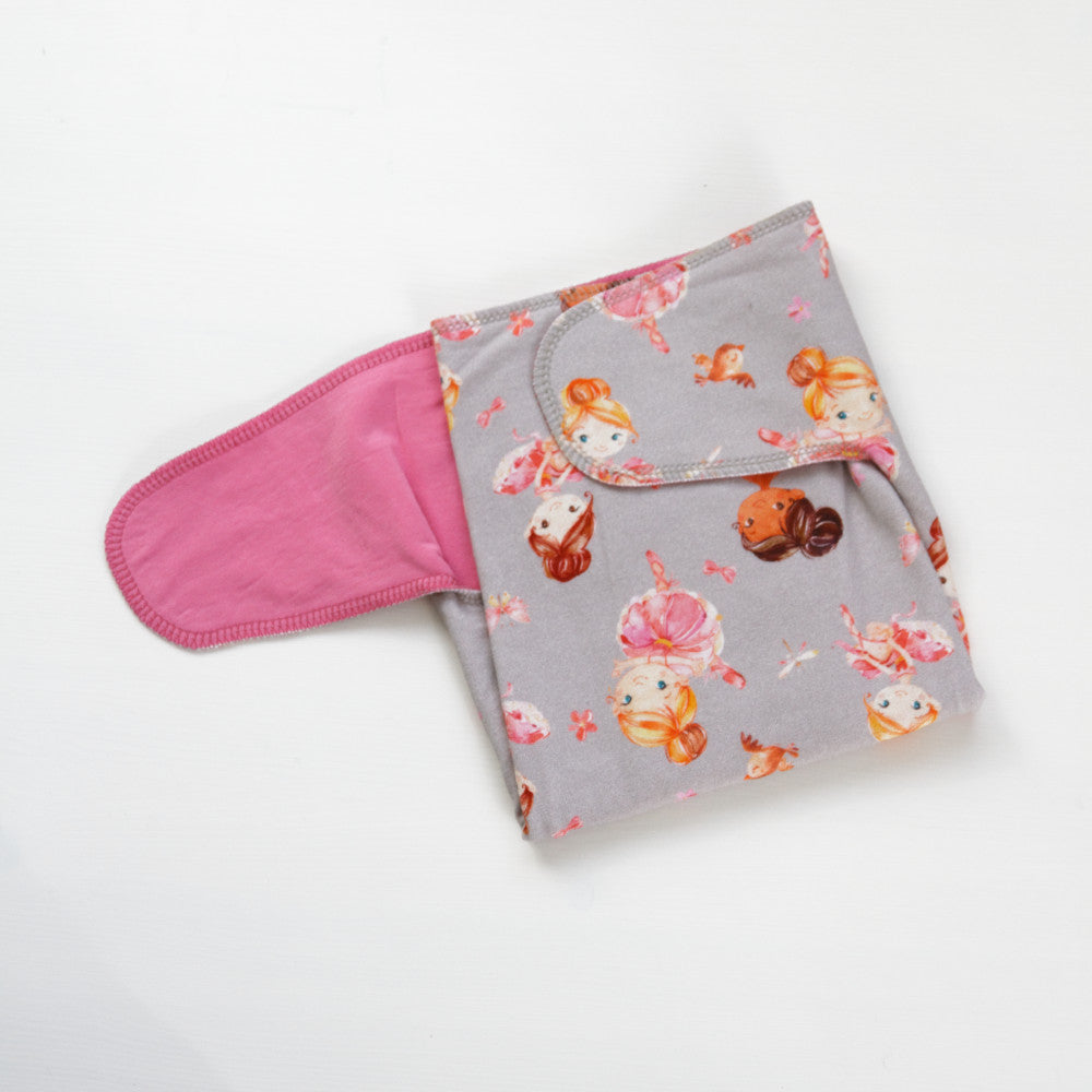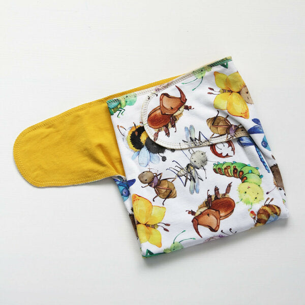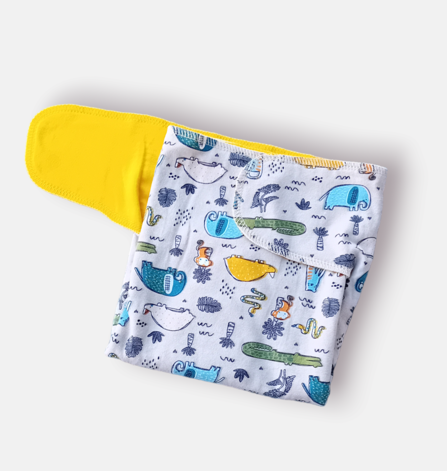 Servem para bebês de 4 a 15kg aproximadamente, podendo ser dobrados na parte da frente ou na de trás para permitir ajustar ao tamanho desejado. Como não tem fecho necessita de boingo ou snappi para prender e como não é impermeável necessária de uma capa que a cubra.