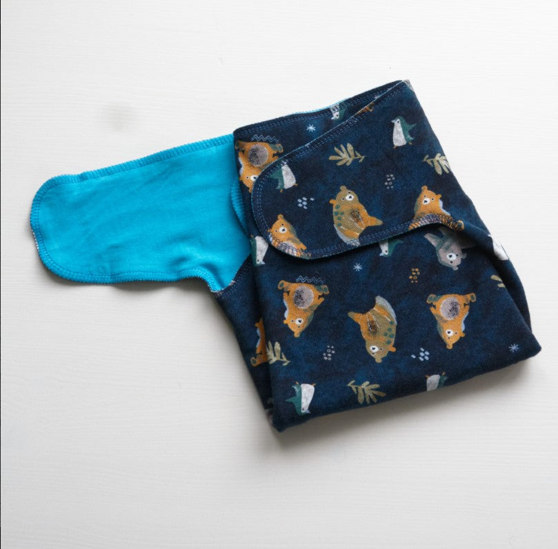 Fralda pré-plana muito absorvente e confortável. Feita de forma artesanal por uma mãe da Estónia e constituída apenas por materiais naturais e 100% sustentáveis.