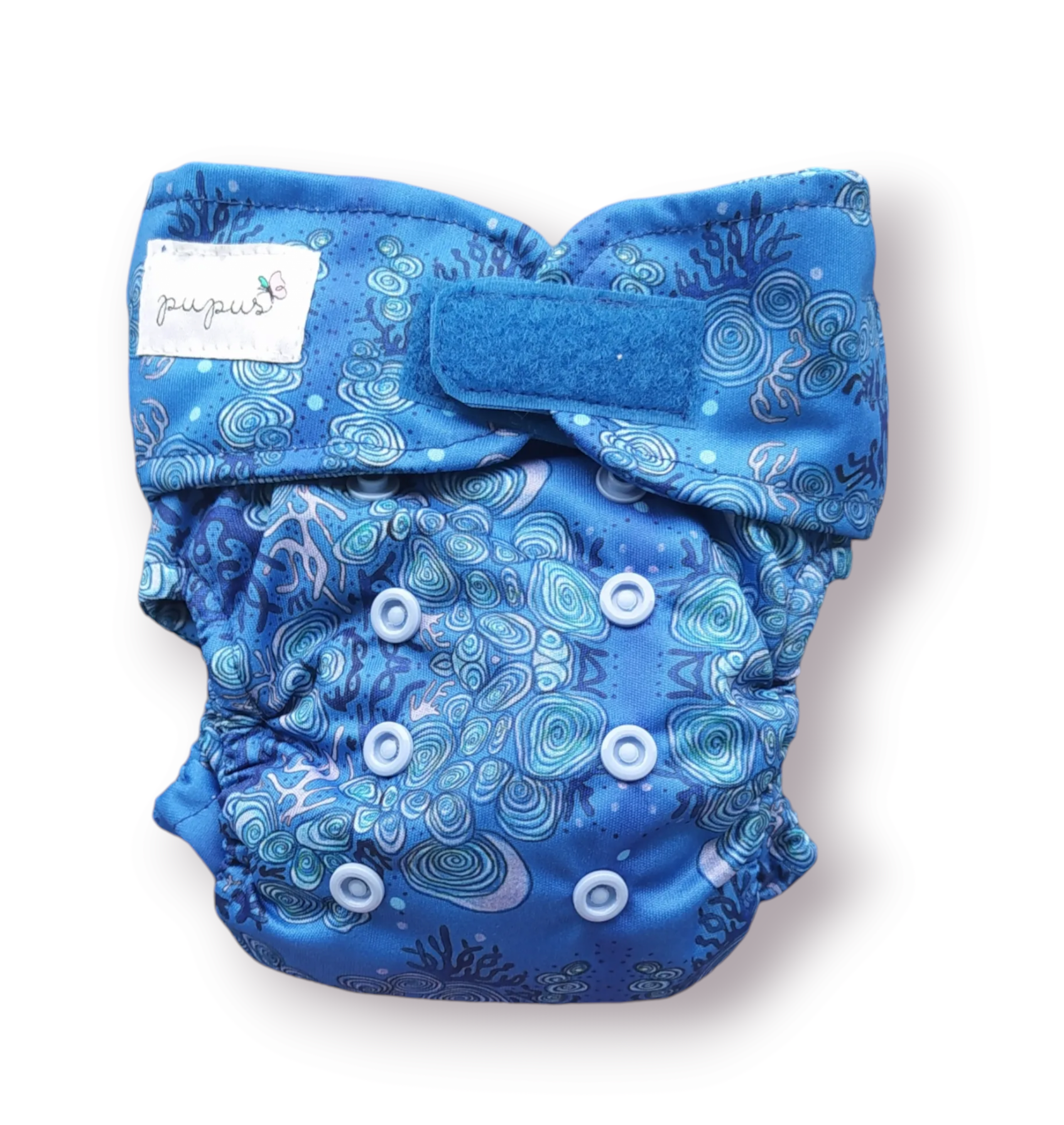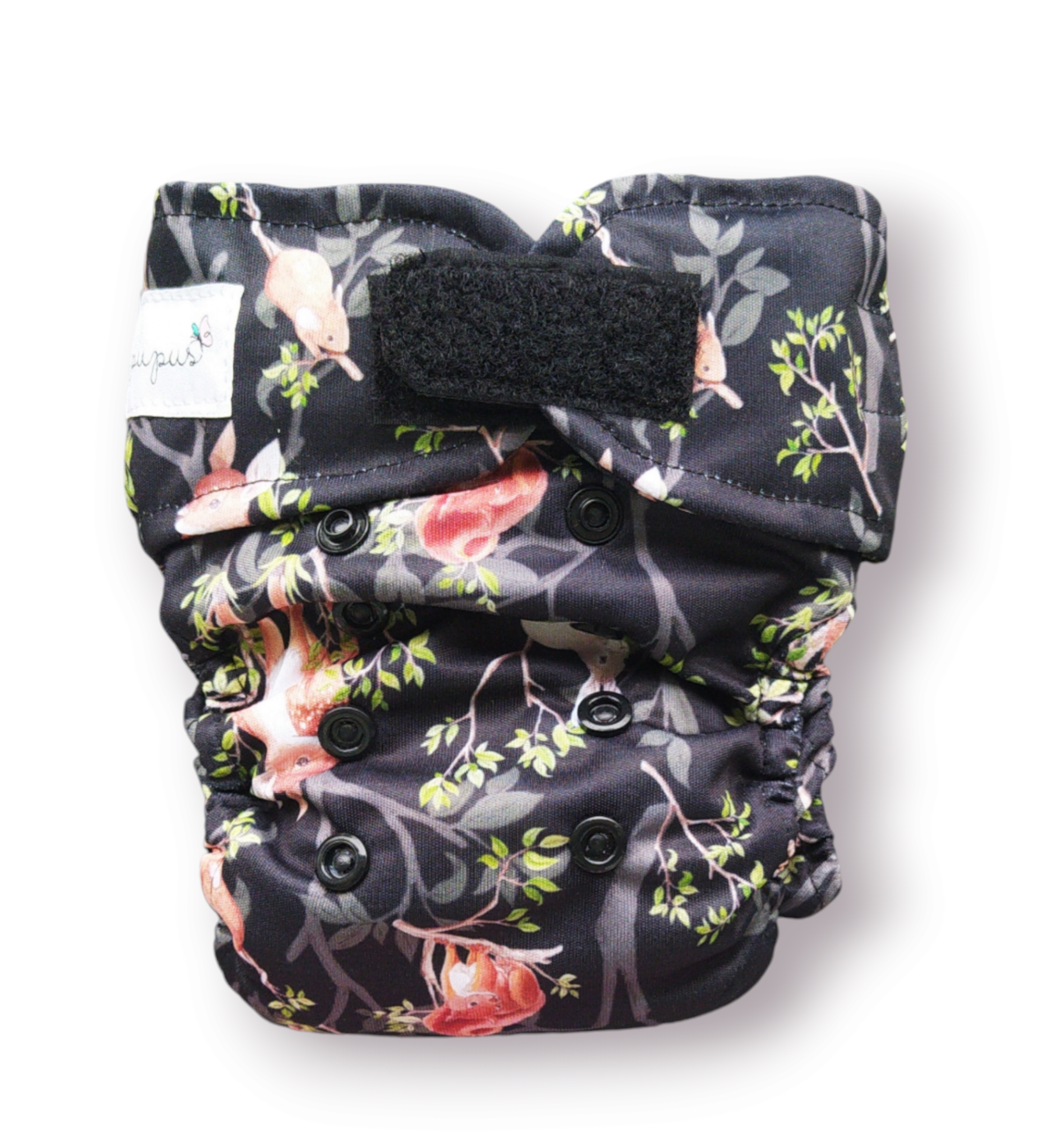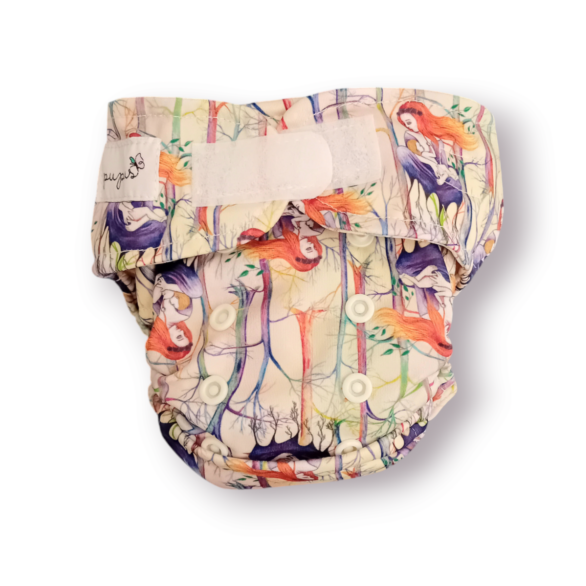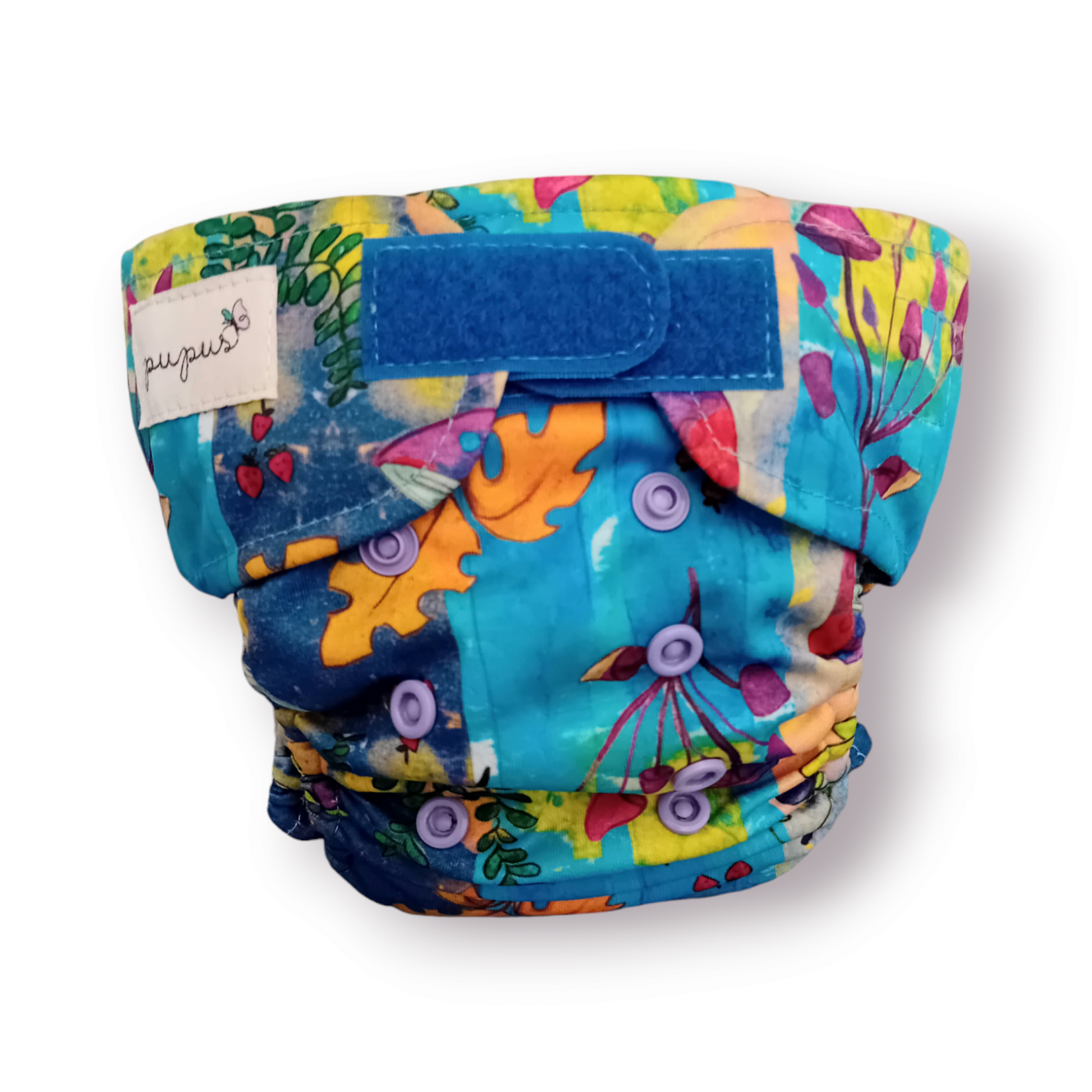 A fralda reutilizável tudo em um da marca Pupus é uma solução completa e prática. Com um design slim e estreito entre as pernas, ela oferece elasticidade e pouco volume, garantindo um ótimo conforto e volume reduzido.