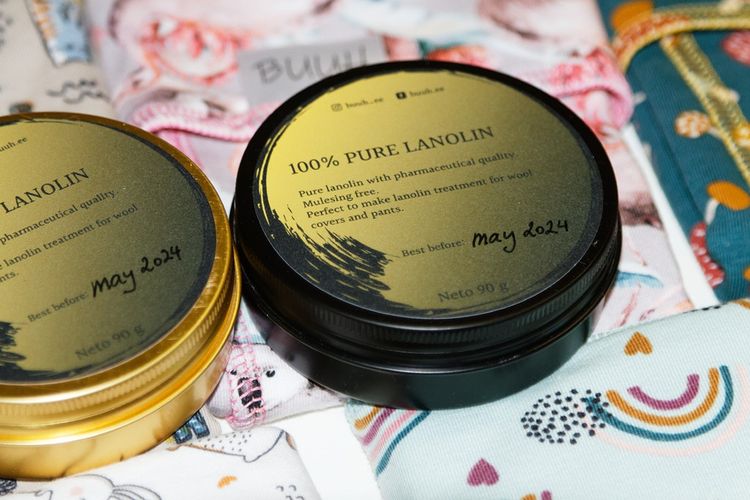 Lanolina sólida anidra 100% pura, sem aditivos nem conservantes. Proveniente do sebo da lã de ovelha é uma substância hidratante e a melhor forma de lanolizar as peças de lã, sejam capas, calções, calças, soakers, shorties, longies ou mesmo liners de lã.