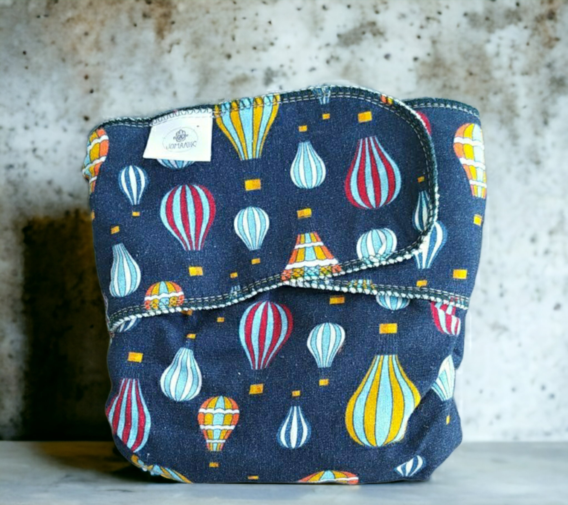 Fralda de recém-nascido que serve sensivelmente desde o nascimento até 6 kg, aproximadamente. Feita de forma artesanal por uma marca portuguesa.
